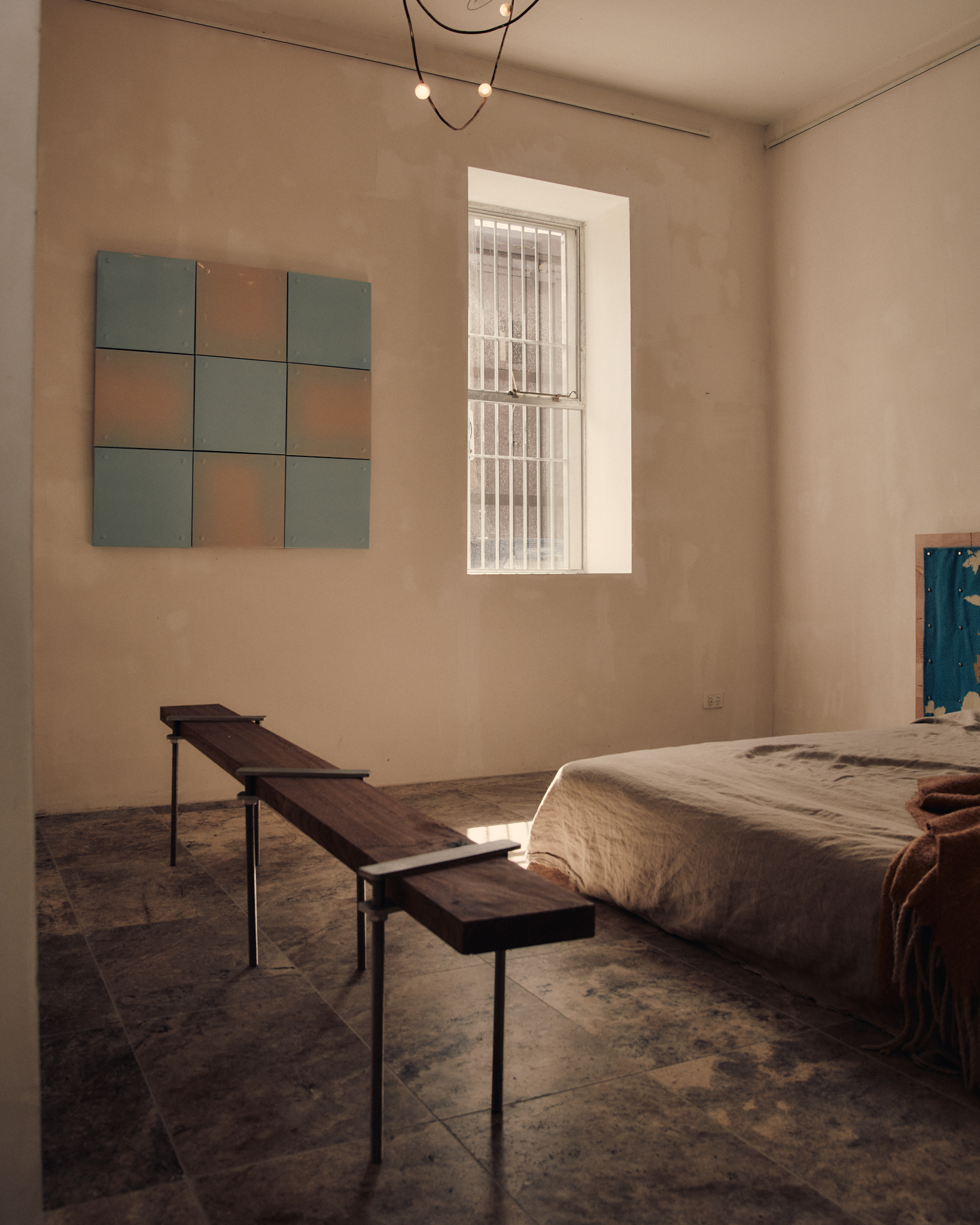 Motifs recognisably BMDO recur throughout: minimal but sharp repurposing of found objects and materials, tapestries, and handmade, almost naïve qualities carry through with precision. Colour and line are crucial here, gestural interventions that push objects toward abstraction, where furniture edges into painting and painting edges into spectacle.