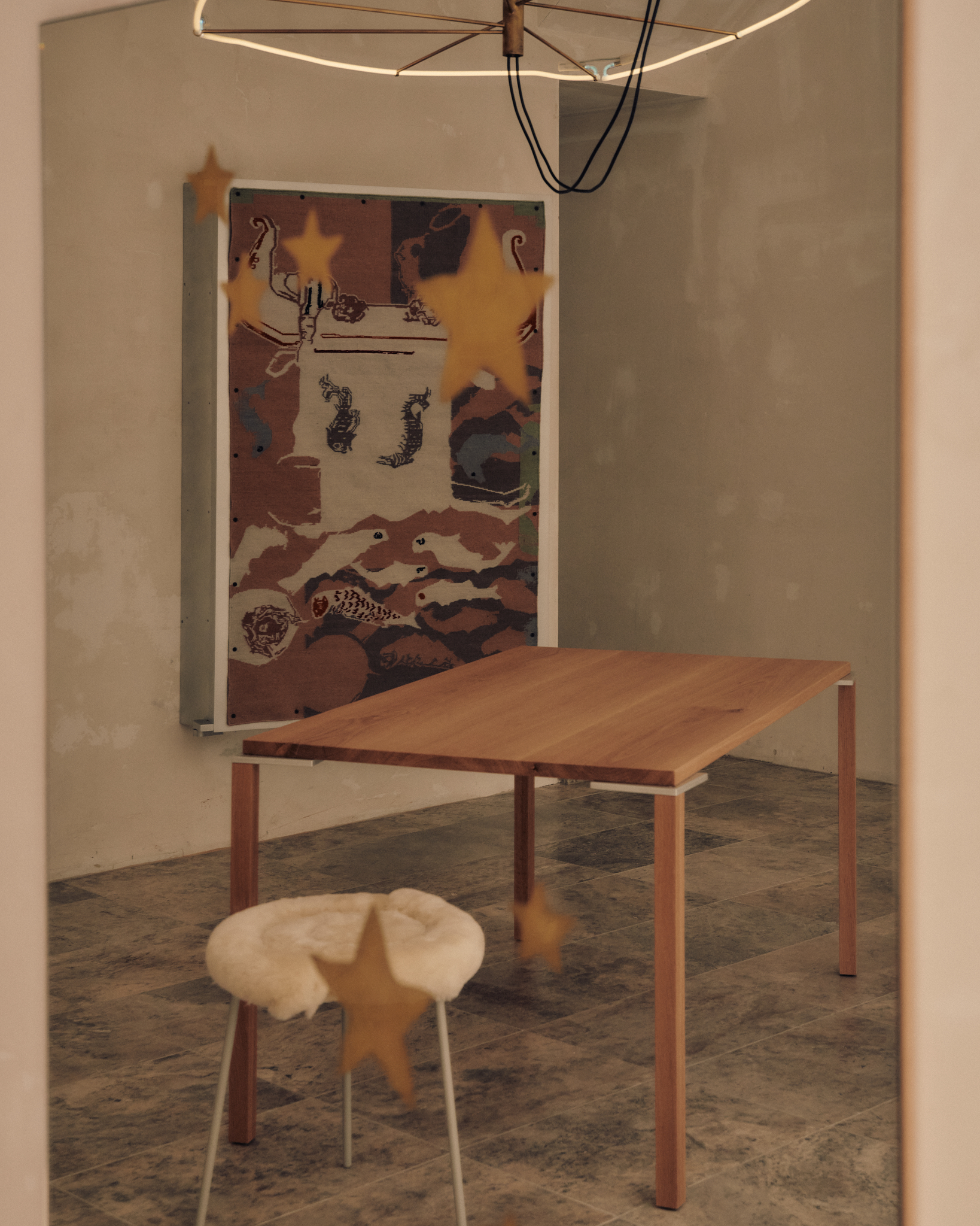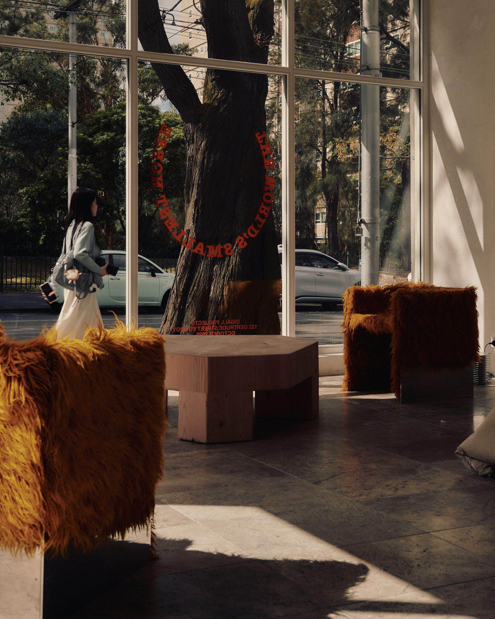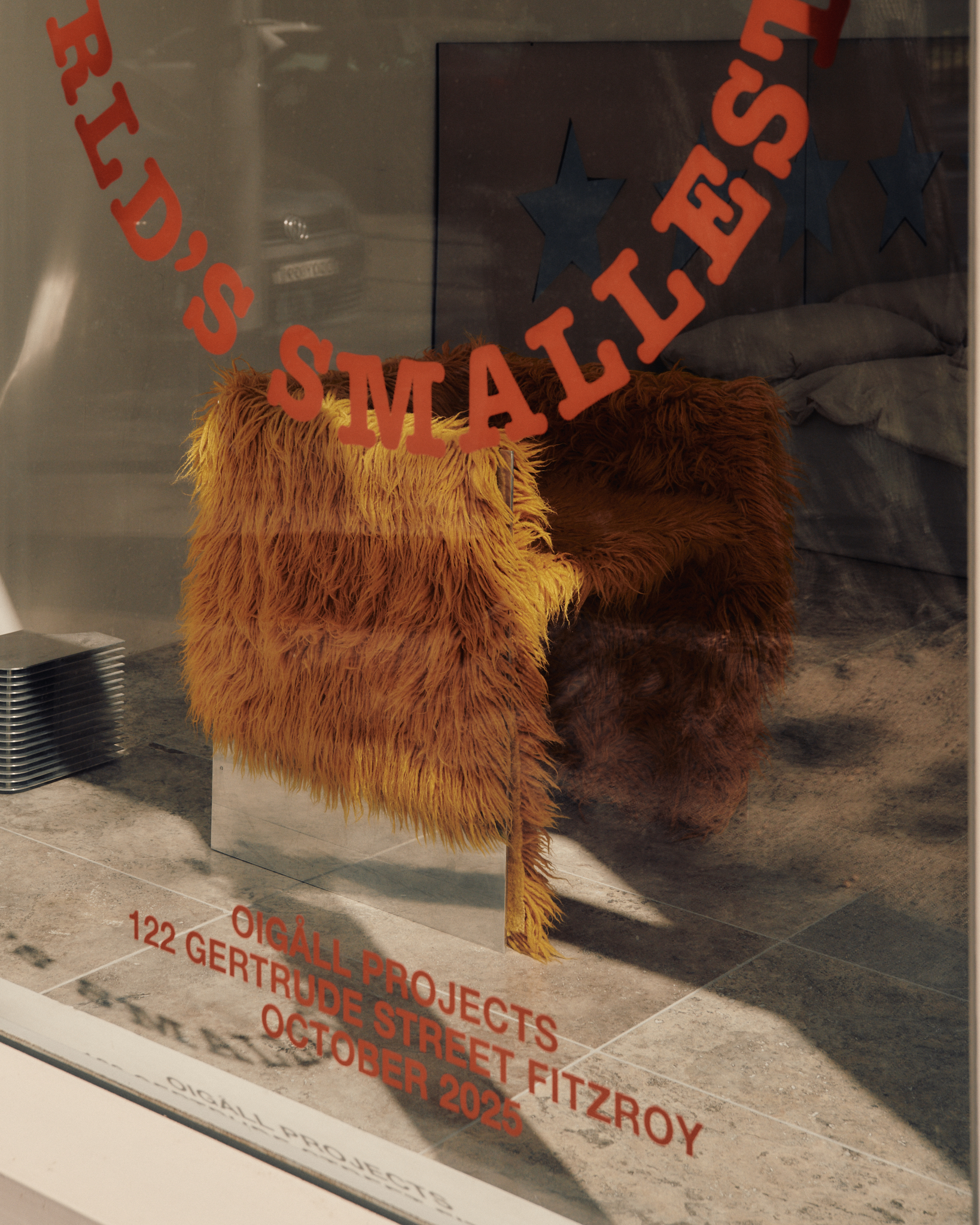 World’s Smallest Horse, BMDO’s sophomore solo exhibition at Oigåll Projects, treats space as an emotional medium shaped as much by disjointed memory as by material. The soft hum of dealership air-con, The Whole Circus, and the melancholy of dumbed-down Rothkos and half-remembered González-Torres’. Commercial drip trays go Frankenstein on USM, festoons get their glow-up, and tapestries imagined as paintings return to furniture.