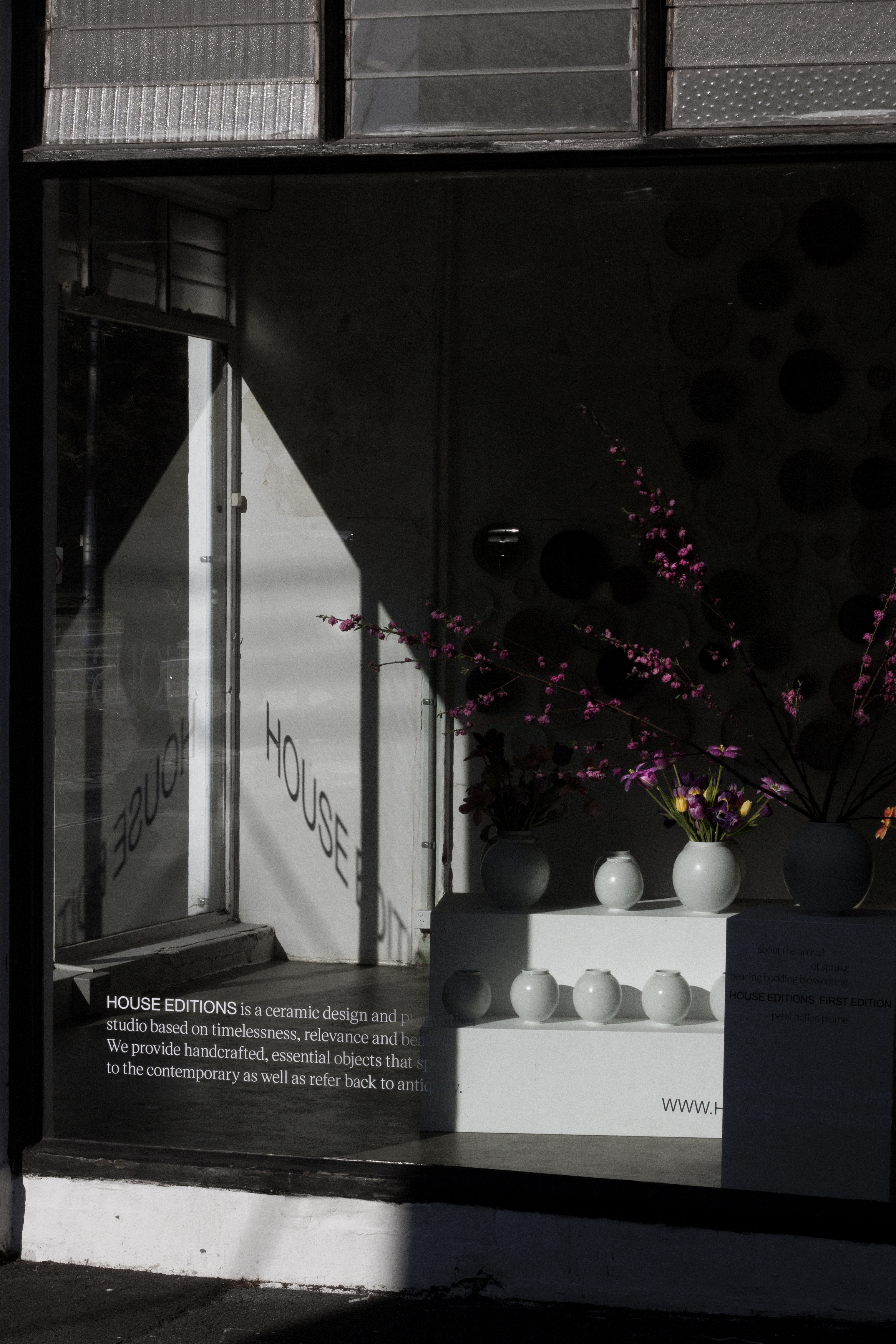 The cylinder plate, petal plate and moon jar will occupy the front space of 122 Gertrude St as an expanded field, installed in a salon wall hang and placed on plinths. The second room will showcase an exhibition of campaign images directed by Sarah Pritchard and photographed by Lauren Bamford. Our packaging and branding will occupy the third space, flanked by process imagery by Annika Kafcaloudis, to give an intimate view of the layered process behind each piece.