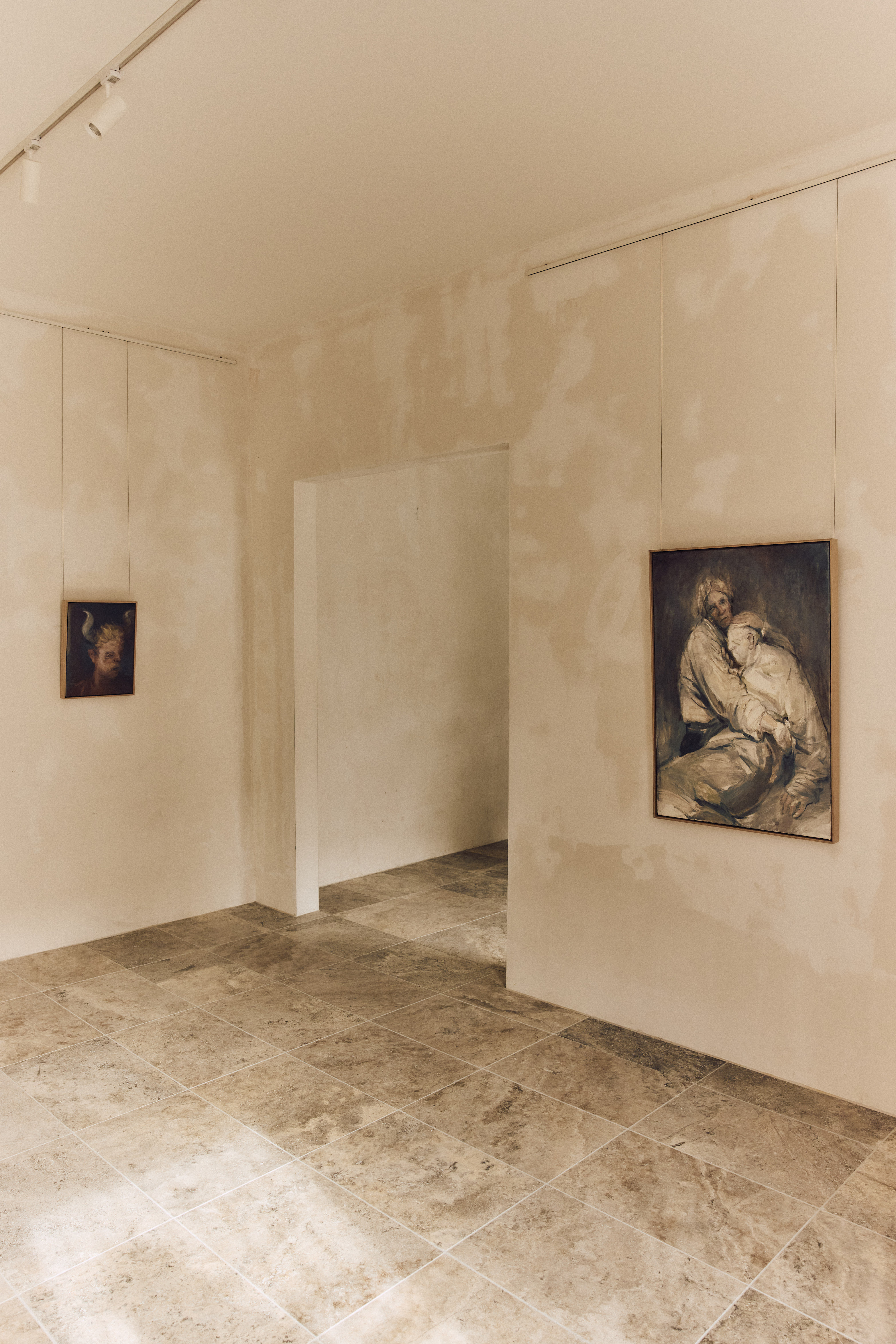 Emerging from a period of heightened creativity and personal change, moving between studios and shifting home spaces, this new body of work from artist Nic Ives marks a rich chapter of instinctive, fluid making. Derived from details of daily life and drawn from narratives mundane and familiar, the paintings he has produced adopt a kind of poetic, magical realism to explore figures and tropes that are perhaps rooted in the subconscious. There is something speculative about them, not only in their subversion of the ‘normal’ and “perversion of the nostalgic” as the artist describes the play with painting tropes, but also in their uncanny gaze toward the audience and Ives himself. In this moment of half-realisation they seem caught between worlds and selves, suspended in the act of becoming or un-becoming. Working quickly with paint and leaving surfaces unfinished and narratives open-ended, Ives tenderly commits to this process, letting his state of being guide the work and infusing it with the poetry of the moment. The resulting works feel like intimate, curious vignettes of a bizarre domestic landscape. Though perhaps they are better described as capturing the feeling of being in-between, but not without a sense of home.